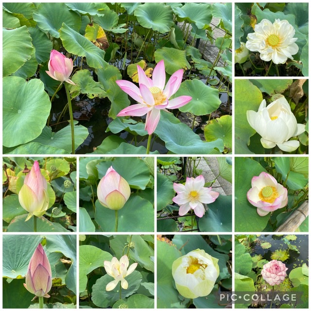 先日、テレビが紹介していた行田市の田んぼアートを見てきました。自宅から車で40分ほど。写真は古代蓮会館の展望台から見た景色です。着物の花柄や波のしぶきなど、細かな模様が表現されています。蓮は名残りの花が少し咲き残り、蓮の実とのコラボも良かったです。行田の ?級グルメ「ゼリーフライ」も