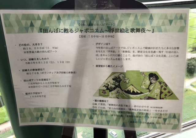 ♥田んぼアートは他の自治体でも取り組んでいるところはありますが、経費もかかるようで、先日も広島のある市が経費のかかる田んぼアートの廃止を決定したという動画を見たばかり。少し残念な気もしていましたが、行田のアートを見て、やはりお金はかかると感じました。しかし、行田市では300人以上のボランティアが植え込みをお手伝いしていると紹介していました。歴代では、陸王やラグビーワールドカップ、映画のぼうの城などがテーマの作品も。皆さんが支えておられての毎年開催。素晴らしいです。展望台は一人400円なり。今は観光などままなりません。三密を避けながらの短い滞在でしたが、少し気持ちがリフレッシュしました。