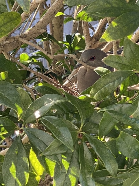 今朝、家人がキンモクセイの鳩の巣にたまごを抱く親鳥発見。そっと写真を撮りました。いかがですか。この顔つき。なかなか哲学的な表情でしょ。つくづく、野生って凄いと思います。本能と身一つで生きている。凛とした目線、姿…。最後までたまごを温めてほしいです。