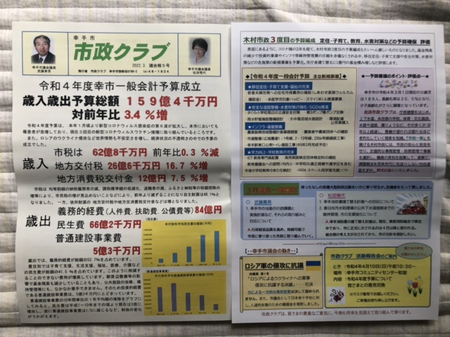 の新聞折込みに会派「市政クラブ」の議会活動報告が