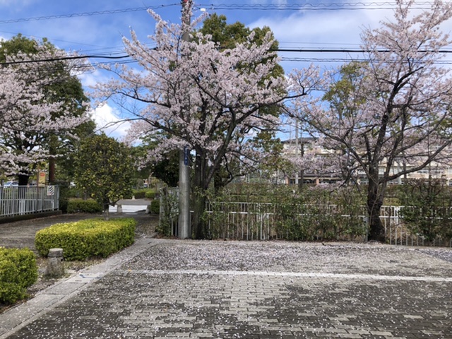 満開を迎えた桜 が昨日の雨で散り始めました。今日、香日向地域で見つけた"ゆく春“。大中落水路脇の舞い落ちた桜の花びらです。