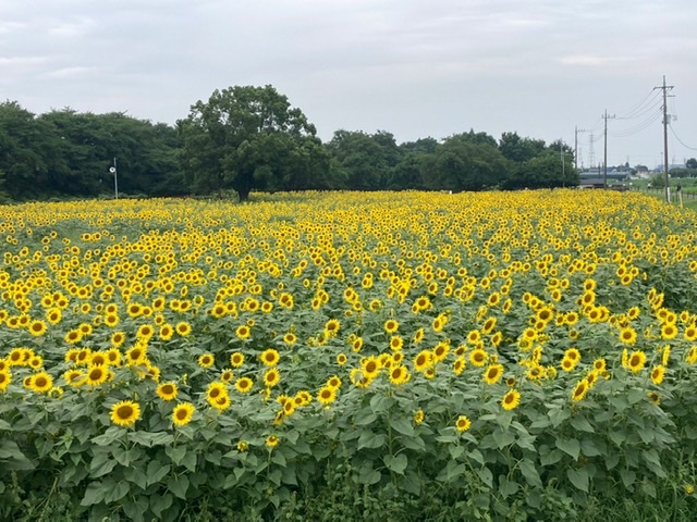 今朝、権現堂第2公園で家人が主宰するランイベントに家族でご参加くださった市外の知人から、第4公園のひまわり🌻畑に行ったよ情報をいただきました。