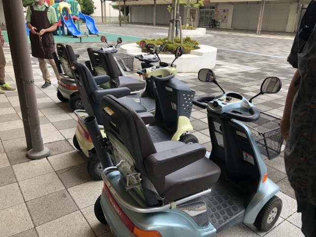 場所は栄団地。試乗するのはコミュニティカフェ経営者が地域の方のレンタル用にと置いておられるシニアカー。公共交通の空白地帯を完全に埋めるのが難しい中、自家用車を手放した後の、徒歩でも自転車でもない「個人の自立した移動手段」はないかと探していて、これまで"目を付けていた“シニアカーの試乗機会を得て、昨日は地域の関心のある方々をお誘いして初体験して来たというワケです。