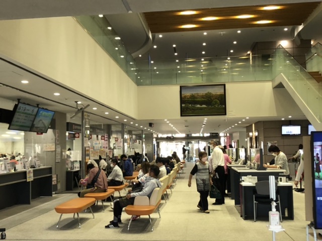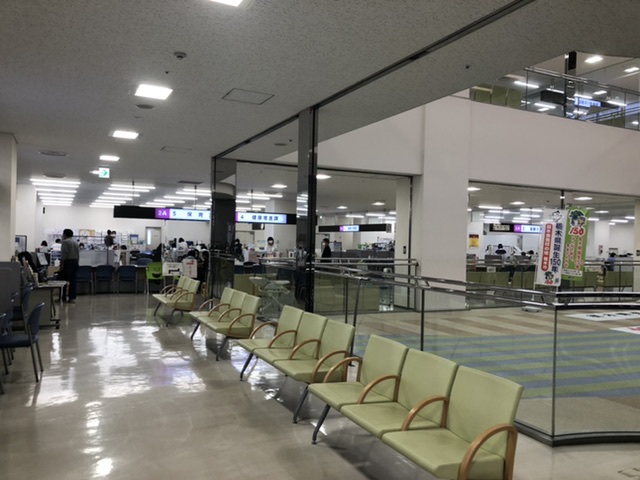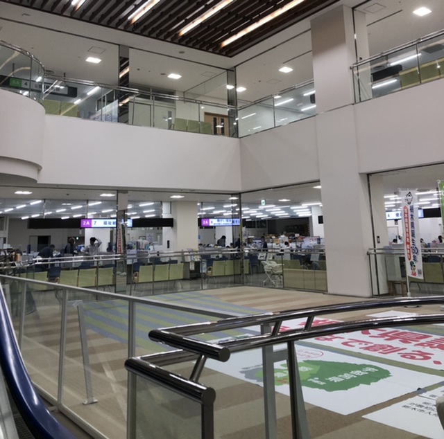 栃木市役所は元百貨店の建物をそのまま利用する珍しい事例です。しかし、外観は旅人にはなかなか目に着きにくい。言われて初めて「あ、こんなところに市役所が!」と驚くくらい街並みに溶け込んでいます。移転前に大改修はしているとのことですが、2階から5階の百貨店時代の居抜きのフロアに職員800人が勤務。1階にはスーパーマーケットがあり買い物ついで、来庁ついでのご用ができて便利です。1階からはエレベーターで上がります。2階は立体駐車場に繋がっています。