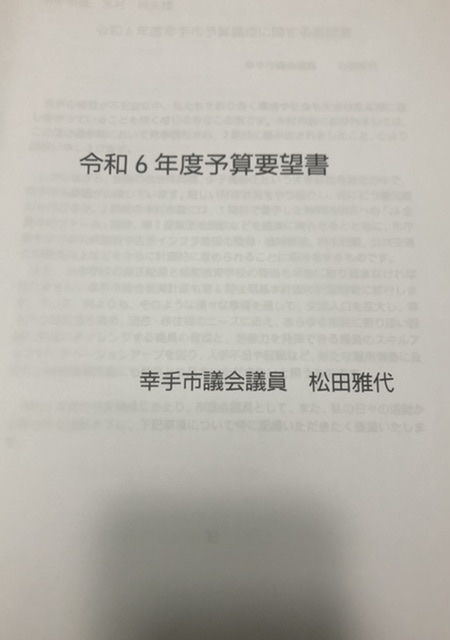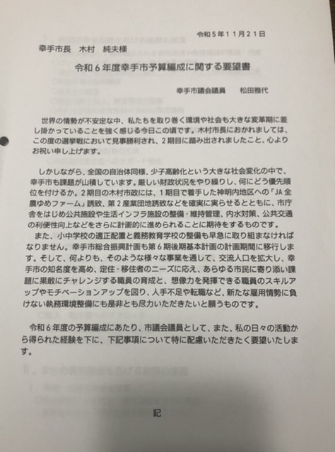 今は来年度予算編成の真っ盛りです。要望を出すには少し遅くなりましたが、昨日、令和6年度要望要望書を副市長も同席いただき、市長に提出して来ました。