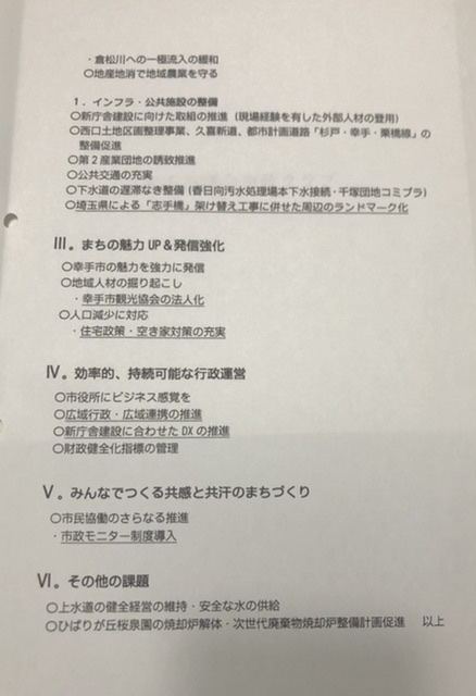 ♥市長、副市長ともご多忙の折り、全ての項目を説明したいところですが、これだけの項目の考え方を説明するのが精一杯でした。もちろん、議員一人の力で全ての要望が叶うことはありません。しかし、この要望書は私の日々の活動の中で感じたことやお聞きする皆さまの声を反映したものであり、要望書の内容については折に触れ、今後の議員活動、議会活動の中で深めていきたいと考えています。すでに12月議会の一般質問にも一部を取り上げました。それについては後日、お知らせいたします。