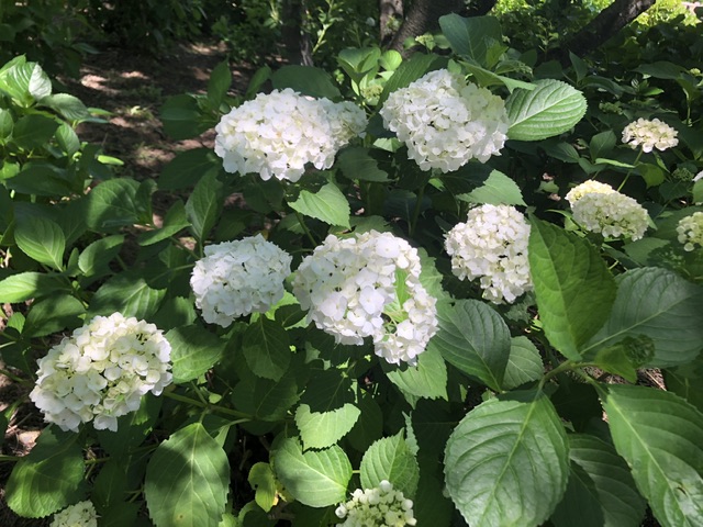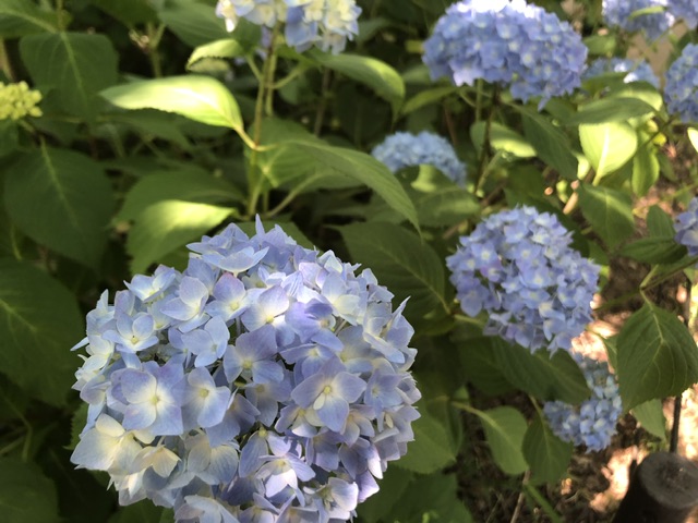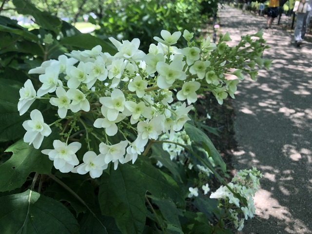 桜の大木がつくる心地よい日陰に、今日は少し冷んやりとした爽やかな風が吹いて。小さな花が咲きはじめた堤にはカメラを抱えた観光のお客さまもチラホラ。草が刈られてキレイに整備された公園は紫陽花祭りを待つばかりに。皆さまも是非!