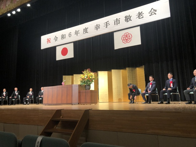 今日は敬老の日です。幸手市では、幸手市と幸手市社会福祉協議会(社協)共催により、令和6年度敬老会がアスカル幸手さくらホールにて華やかに開催されました。