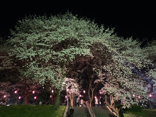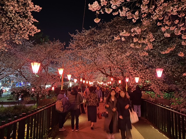 ファイル 2084-1.jpegぼんぼりの灯りに照らされた満開の桜のなんと幻想的なことか。100店の屋台も8時を過ぎても賑やかで、店先を覗きながら桜の下をそぞろ歩く若い家族連れやカップル、友人グループが昼間と同じくらいいて思い思いに散策を楽しんでおられました。あれだけの人たちが屋台で飲食をする環境ながら、ゴミもほとんど落ちておらず。美しい景観が維持されています。嬉しいですね。また、そぞろ歩く人に思いの外若い人が多くて。若い人たちのデートスポットとして権現堂堤の夜桜見物が若者に選んでもらえるスポットとなっていることを嬉しく感じました。
