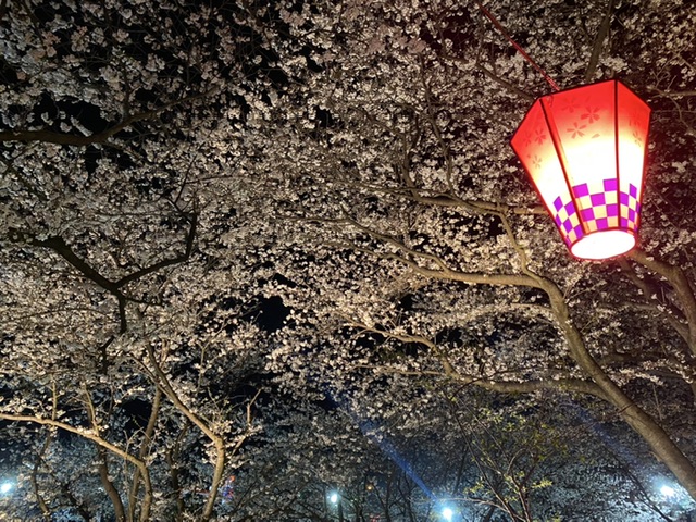 ぼんぼりに照らされた満開の桜