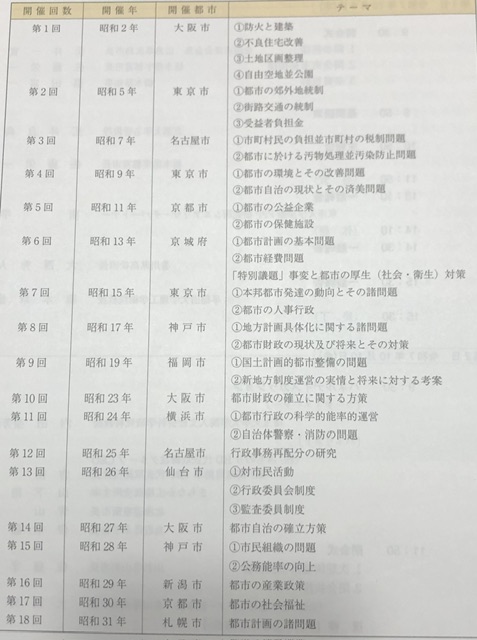 ♥全国市長会主催の同会議は毎年開催市を持ち回りで開催されています。今年は87回目。何と第1回は昭和2年という歴史ある会議です。戦前の昭和15年、戦中の昭和17年、19年にも開催され、戦後は昭和23年から再開されています。歴代のテーマには日本のまちづくりの抱える問題が垣間見える興味深いものです。どんな時代にもまちづくりの様々な問題が議論されて来たのですね。資料が残っているなら当時の議論を研究してみたいです。