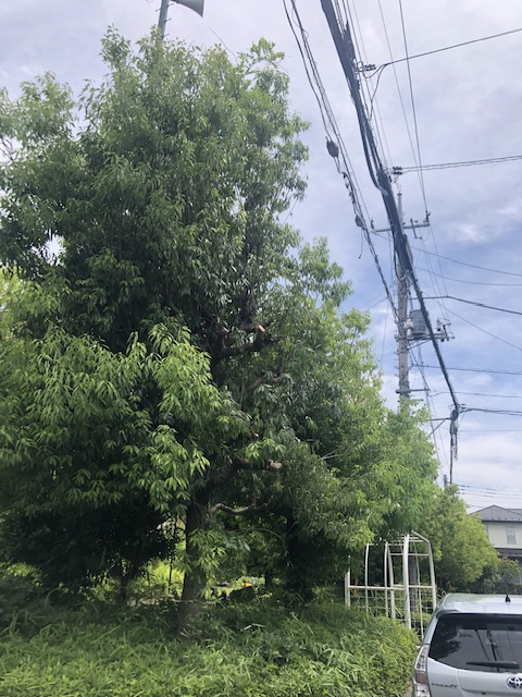 この作業はもう少し時間がかかるかもと私も思っていたところでしたが、実は昨日、市役所の担当課から、昨日すでに作業を行ったとの報告をもらいました。今日、現地を確認すると、ご覧のように電線に接触した危険な枝が取り払われていました。